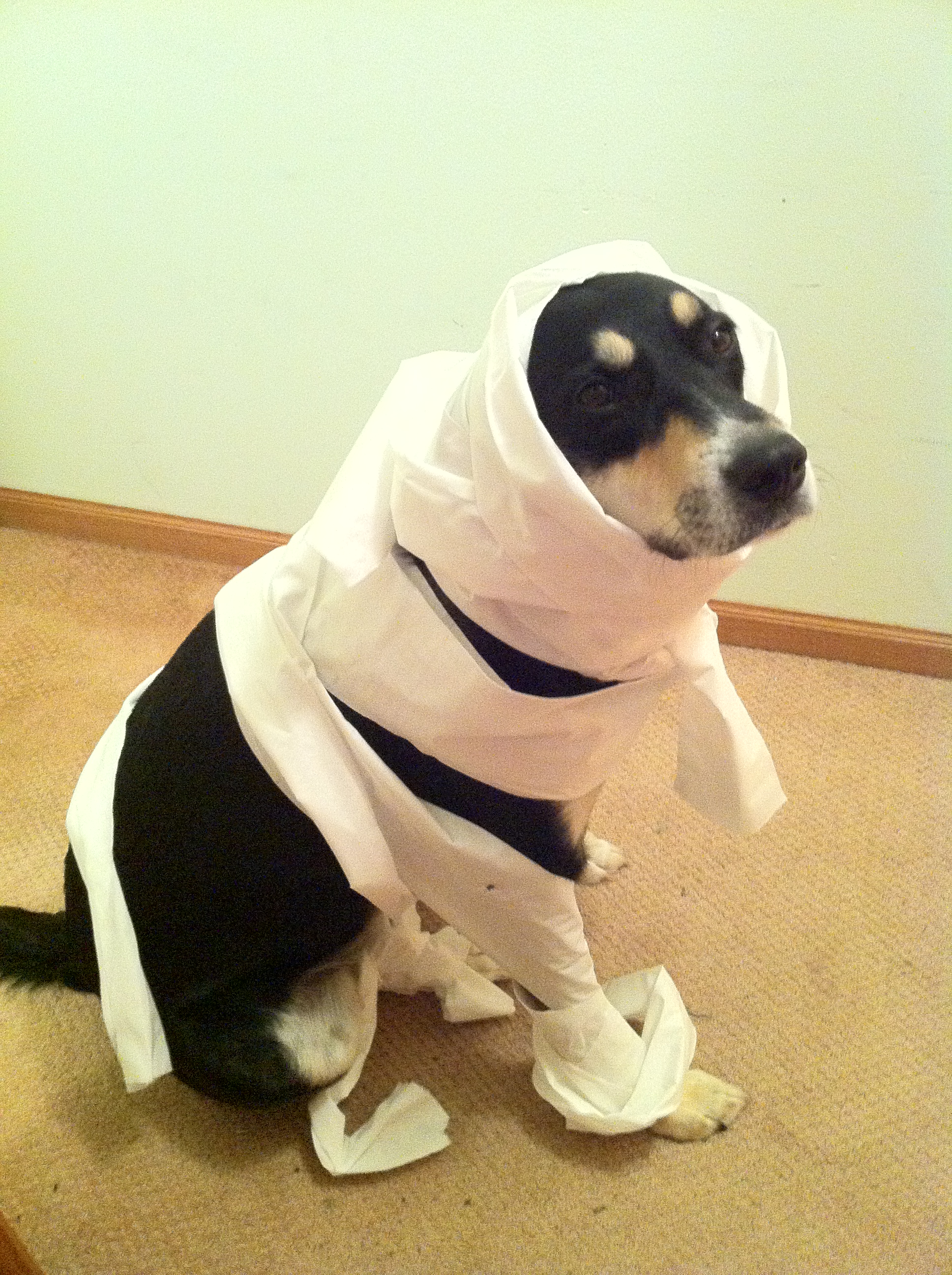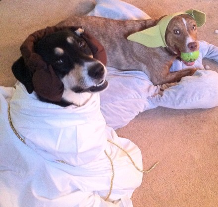 It’s bad enough that Sarah dressed me up for Star Wars Day, but she had to go and find another dog subject to similar problems (my friend Juliet). Not cool. Not cool at all.