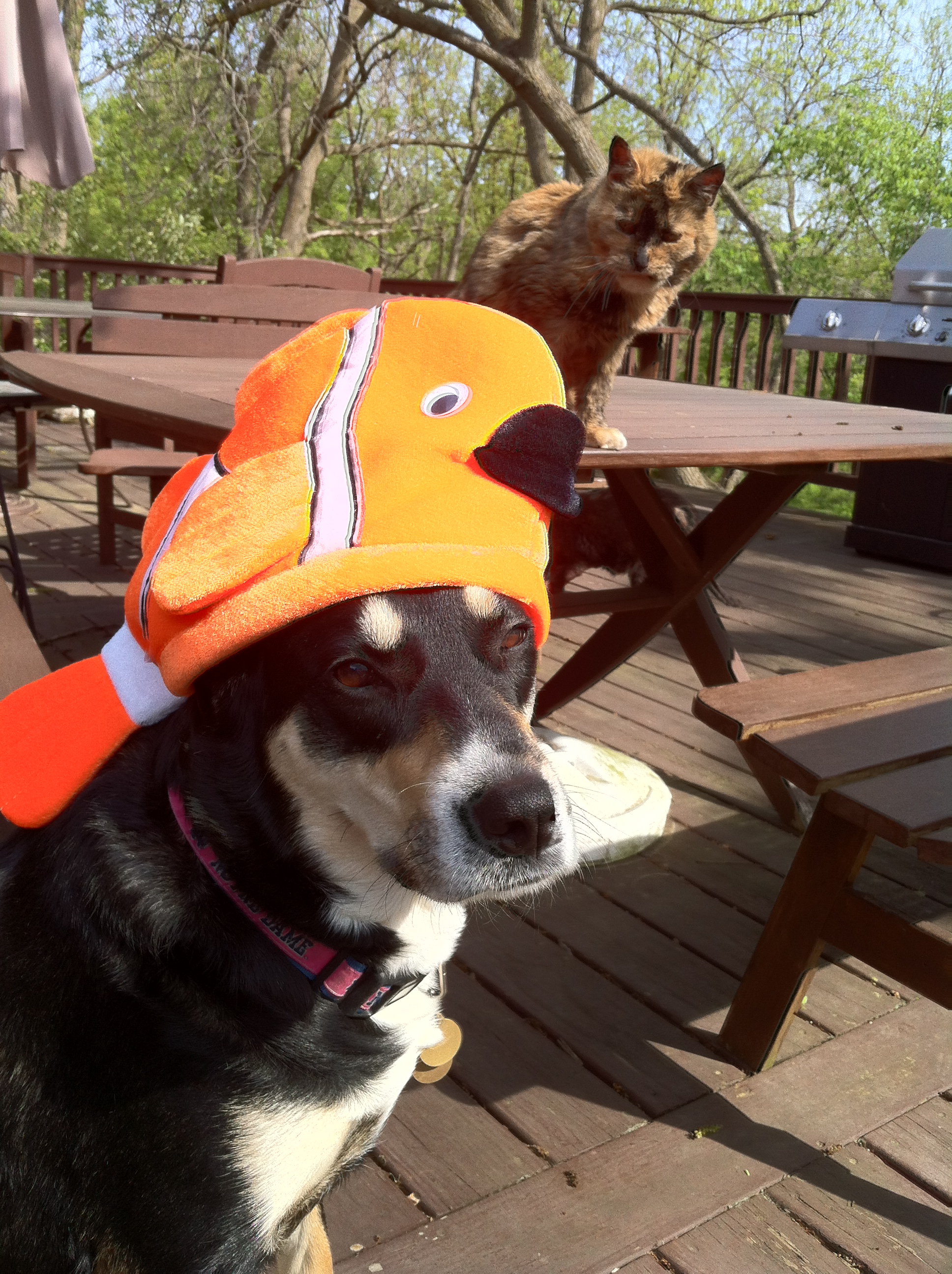 You know, the hat was bad enough on its own. But to add a cat? Just wrong. You know that cat is totally enjoying seeing me humiliated like this. She may enjoy it even more than Sarah.