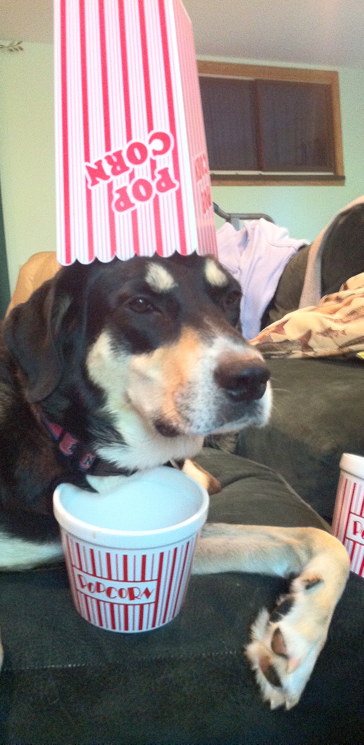 I have no idea why Sarah thought I should wear a popcorn hat. I really should just stop questioning why she does these things to me, and start figuring out a way to make it stop.