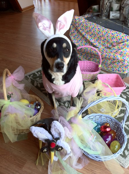 I am meant to chase bunnies, not be dressed up as a bunny. I hope that you are having a better Easter than I am!