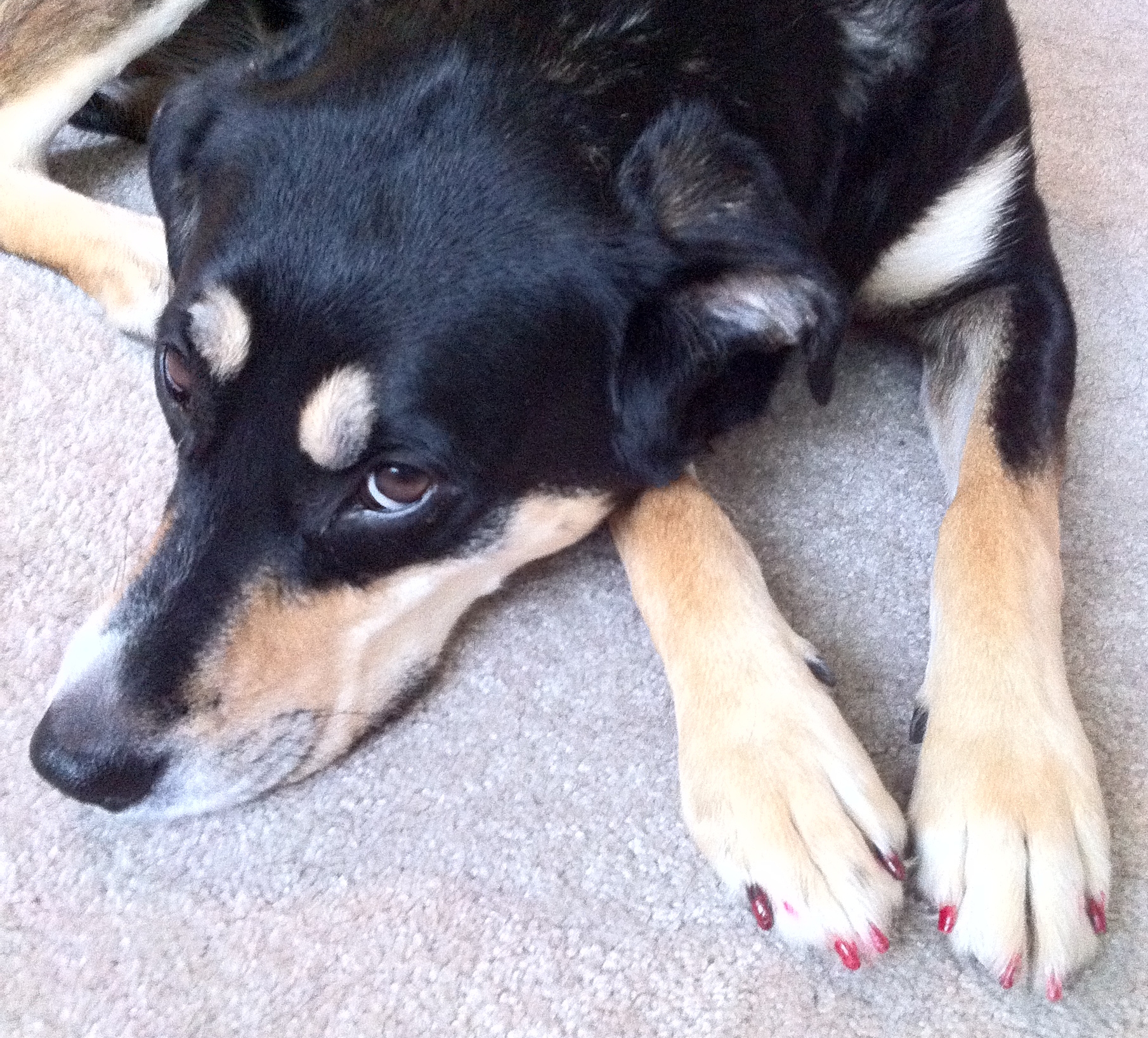 Sarah took me to get my doggie mani/pedi last night. Unfortunately, she thought my nails needed some color as part of the process. And to think, I used to actually enjoy getting my nails done.