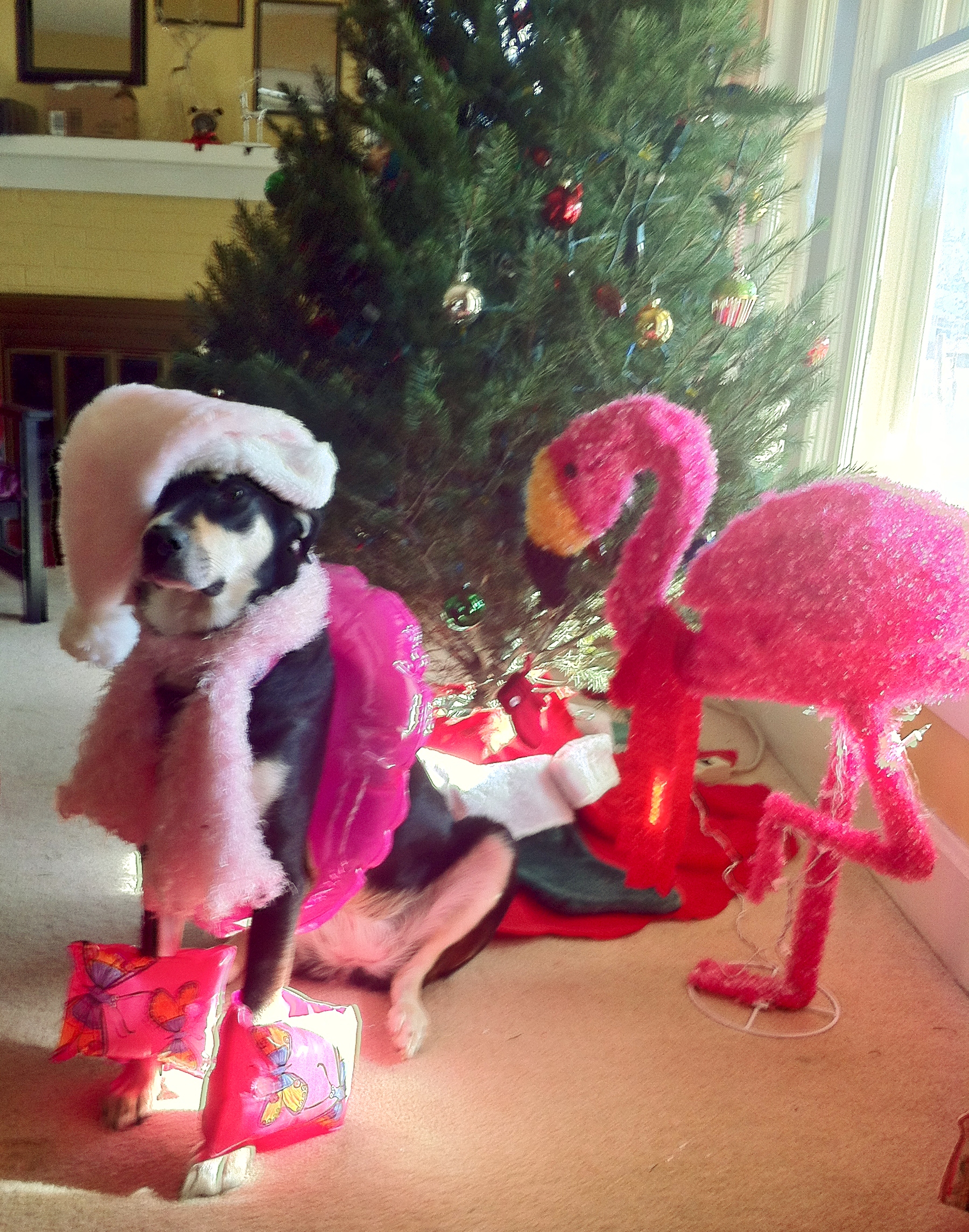 Sarah, put down the Jimmy Buffett music and step away from the dog. You do not live on an island, and flamingos have nothing to do with Christmas. This is your last warning. Posted by choppythedog