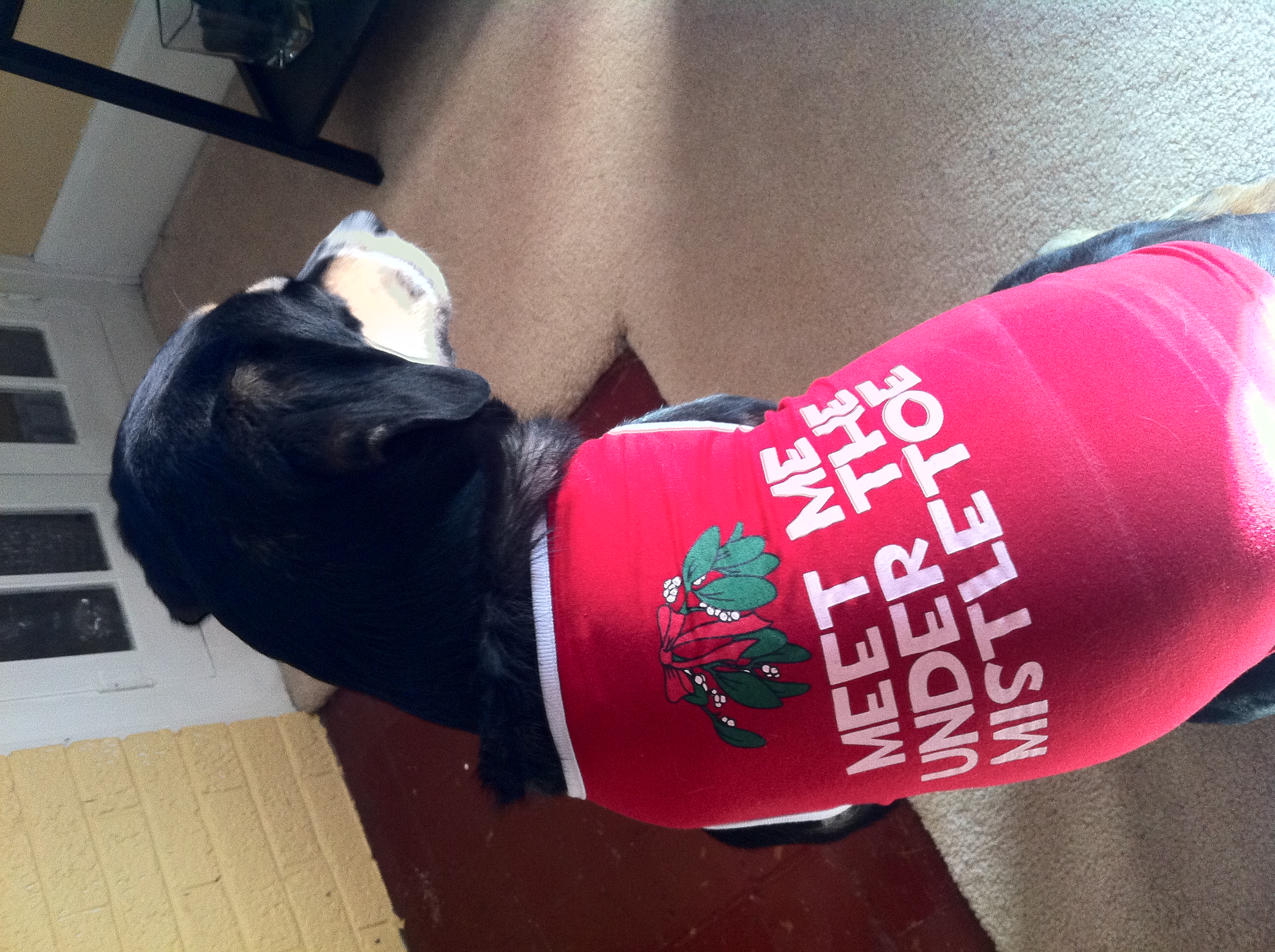 I refuse to look at the camera while wearing this shirt, lest Sarah get the idea that I want to see her under the mistletoe. Posted by choppythedog