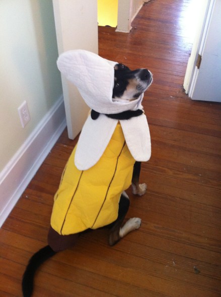 The end of Halloween (thankfully!)…Costume 3 of 3. It is a banana. Please do not mistake me for a monkey. I am pretty sure Sarah got more pictures of this, so I can be further humiliated as the week goes on. Posted by choppythedog