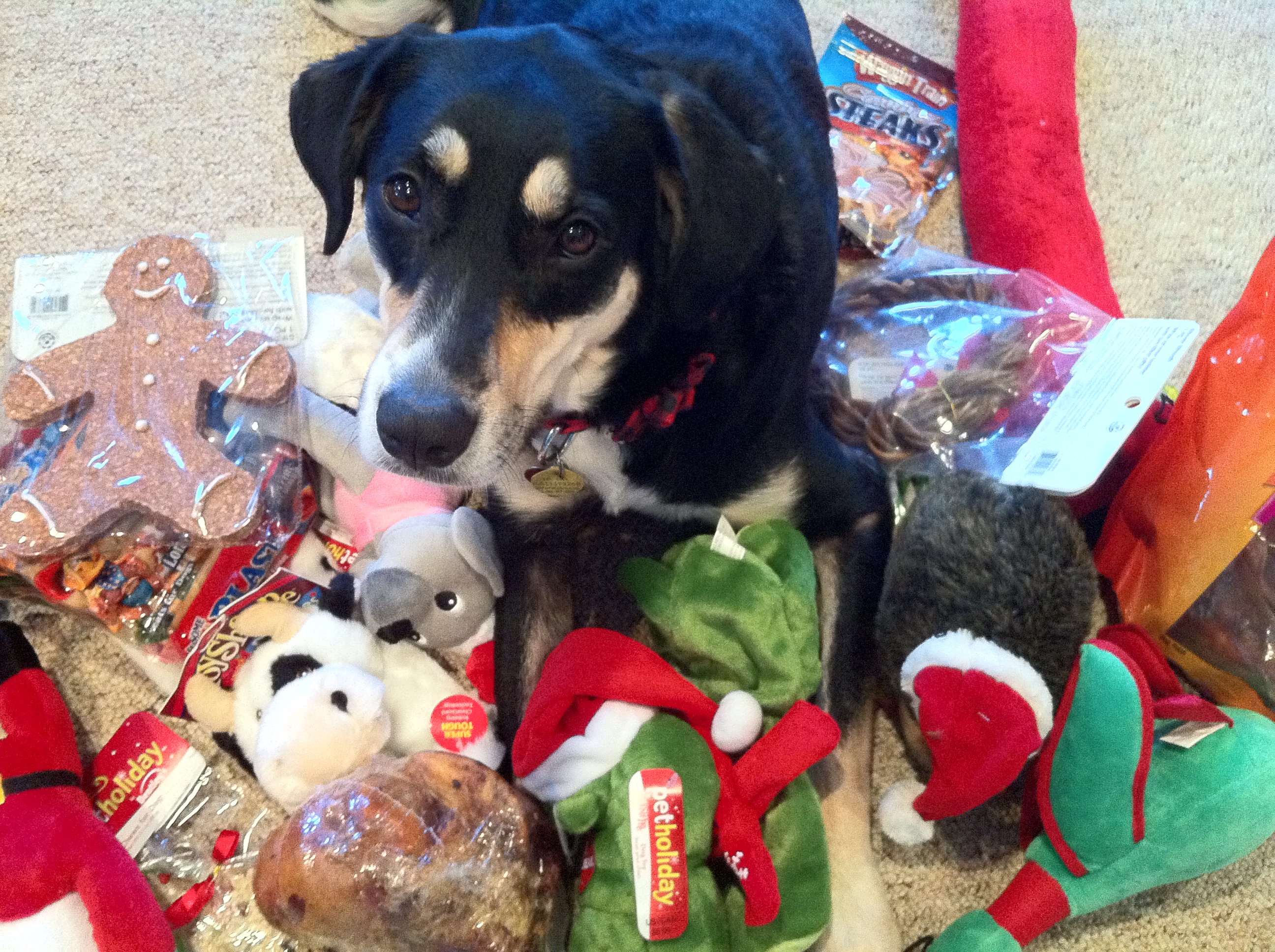 Santa came! And he brought me TONS of toys and treats! Even better, he brought me absolutely NO clothes. Santa is so much more awesome than Sarah! Posted by choppythedog