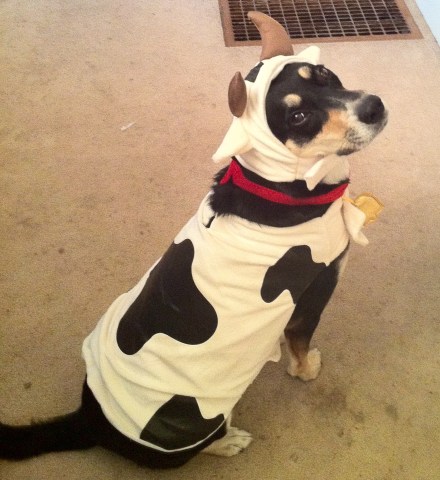 A cow? Really, Sarah? We aren’t even in Wisconsin! This is totally humoooliating. Posted by choppythedog
