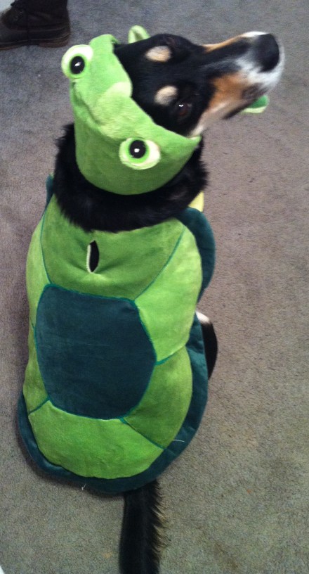 Sarah, I have a poem to go with today’s costume: Roses are red, violets are blue, costumes aren’t sweet, and neither are you. Posted by choppythedog